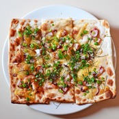 原材料:ピザ生地(自家製造)、タコ、ナチュラルチーズ、テリヤキたれ(醤油、味噌、みりん、砂糖他)、ネギ、アンチョビ、海苔(一部に小麦・乳成分を含む)